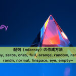 【NumPy】配列(ndarray)の作成方法 ~array, zeros, ones, full, arange, random, randint, randn, normal, linspace, eye, empty~